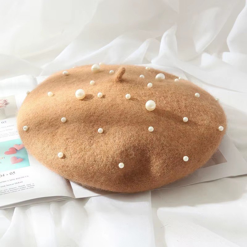 Béret en laine orné de perles