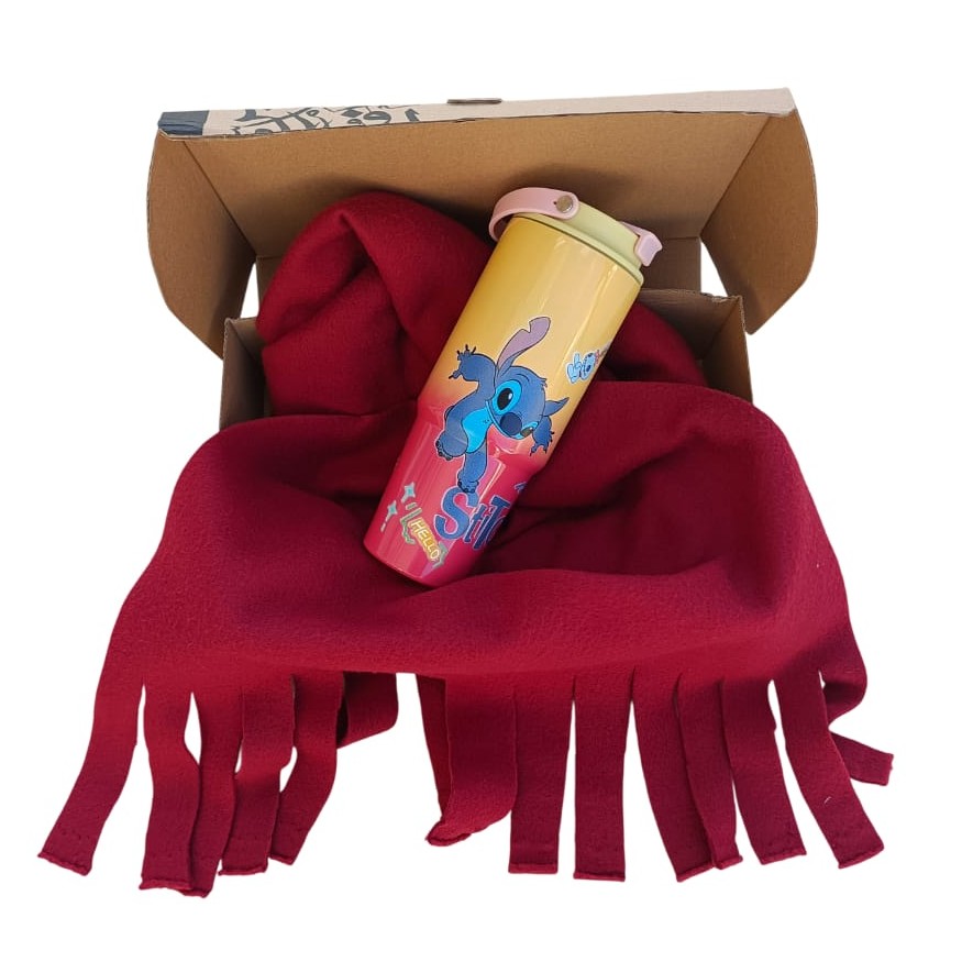 • Option de mug : tasse avec chauffe tasse- thermos Stitch avec motif aléatoire – tasse en verre avec paille