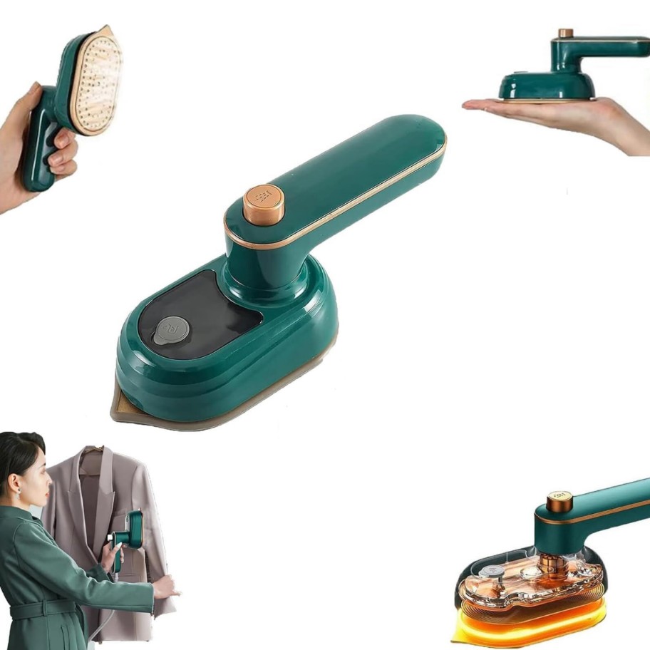 Fer à repasser , mini fer à repasser électrique à sec avec vaporisateur d’eau, mini fer à repasser électrique portable, utilisation à sec et humide, double tension, pour la maison, les chambres d’étudiant et les voyages – Vert