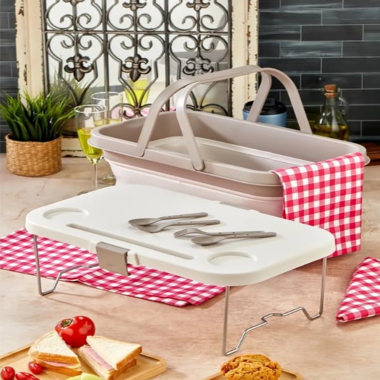 Panier de pique-nique pliable avec support , sac de camping multifonctionnel, portable et léger, table pliante, boîte de rangement et de transport –