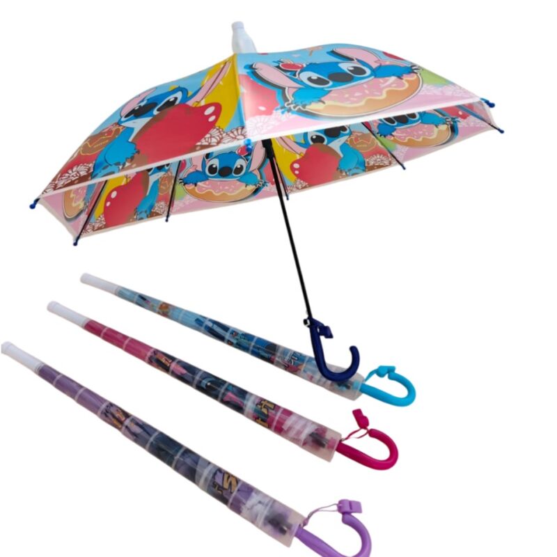 Parapluie STITCH  pour enfants -ouverture-automatique-avec couvercle télescopique en plastique et  sifflet