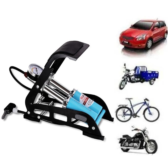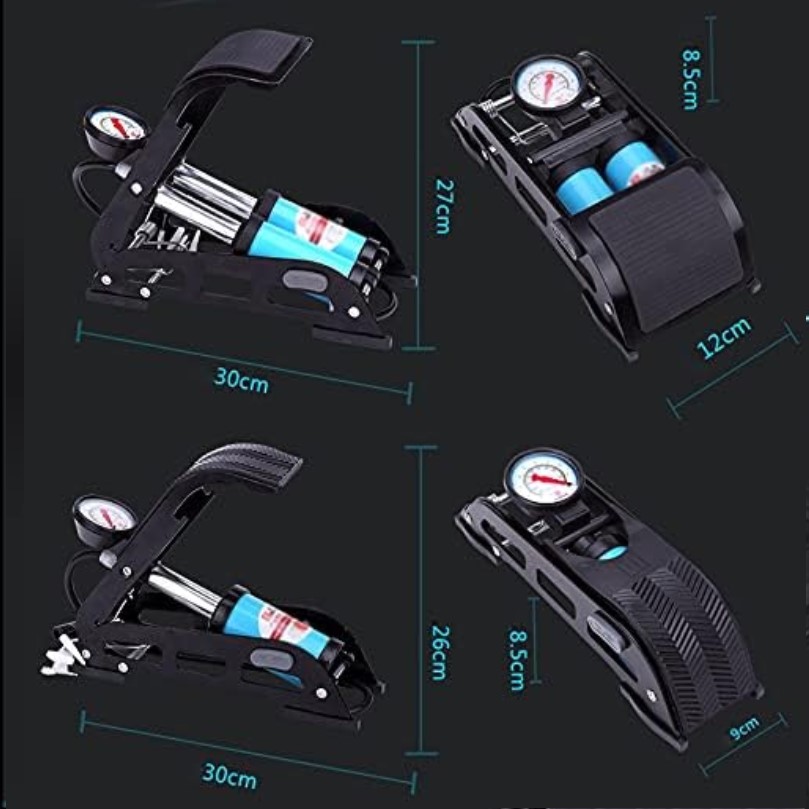 Pompe à air à pied double cylindre, compresseur d’air de pneu avec manomètre de précision, portable, pour ballon, vélo, scooter, moto, pompage de voiture, balles de jouets