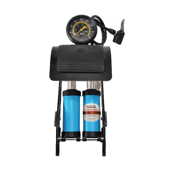 Pompe à pied à double cylindre avec manomètre.