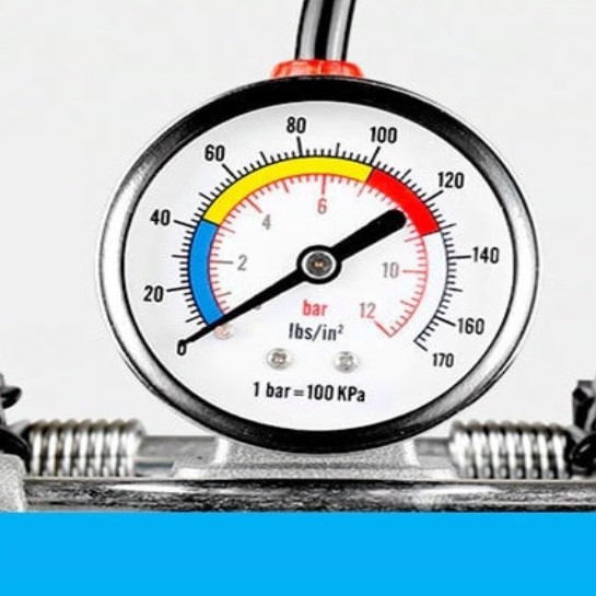 • Utilisation facile et sécurisée : Dotée d’une pédale antidérapante et d’un manomètre pour un contrôle précis de la pression.