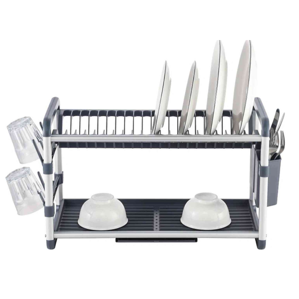 Séchoir à Vaisselle 2 Étages en Aluminium Noir/silver