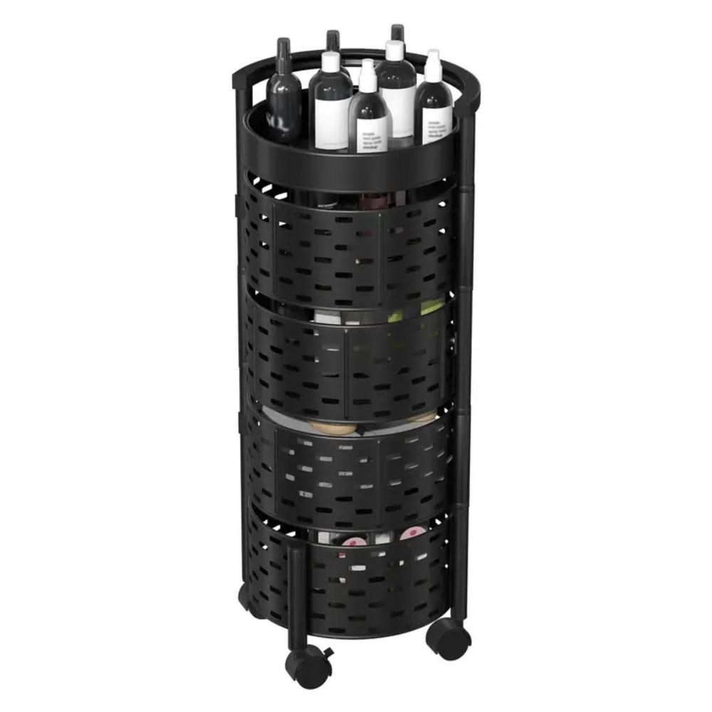 Trolley de cuisine roulant noir – Étagère pivotante ronde avec roulettes 360°